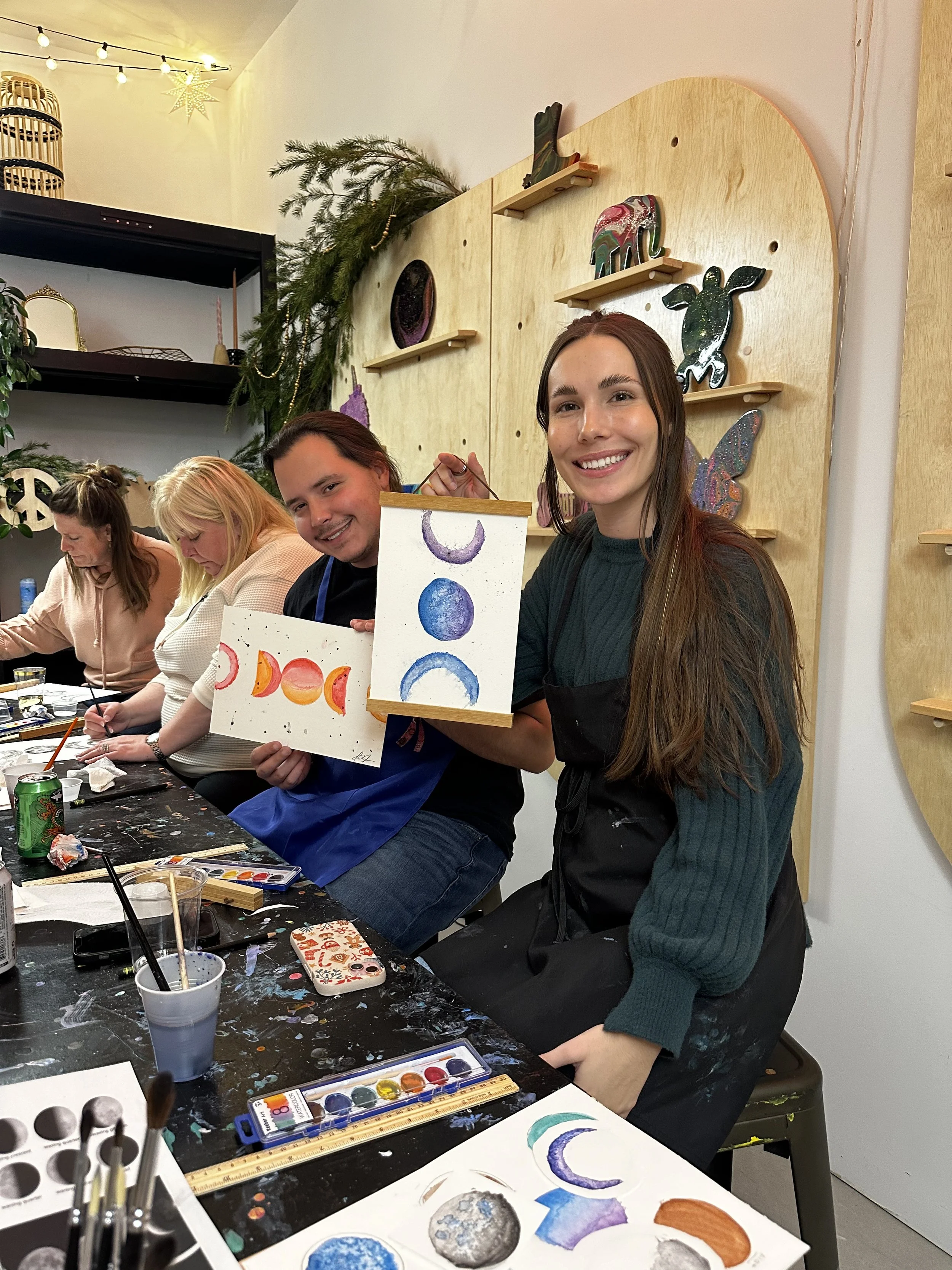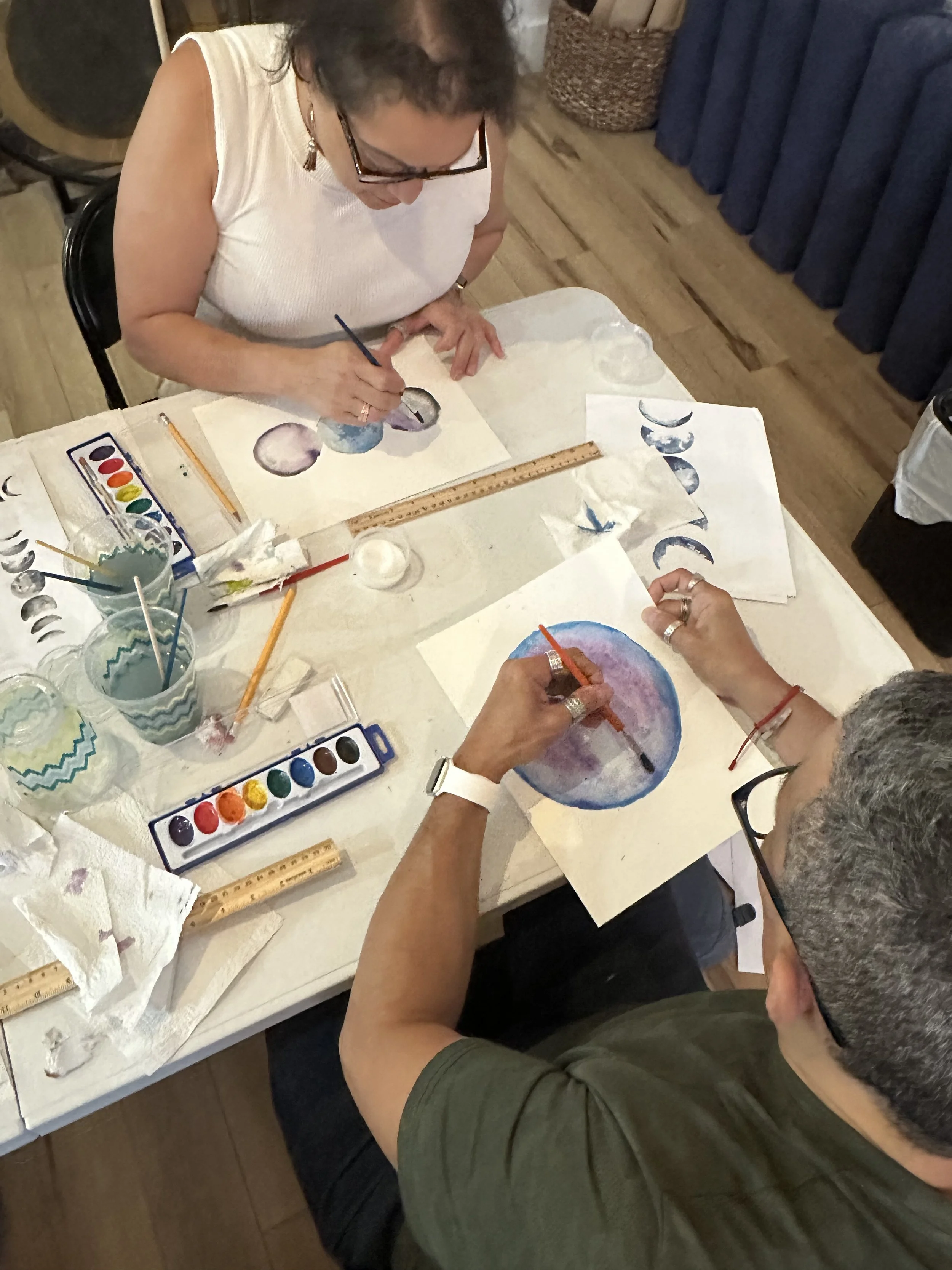 I’m so excited to be hosting this workshop at Earth Salt Stone! Together, we’ll step into a calm, creative space where you can unwind, learn watercolor basics, and paint your own moon phase artwork. This workshop is perfect for all levels—whether it’s your very first time picking up a brush or you’ve been painting for years.